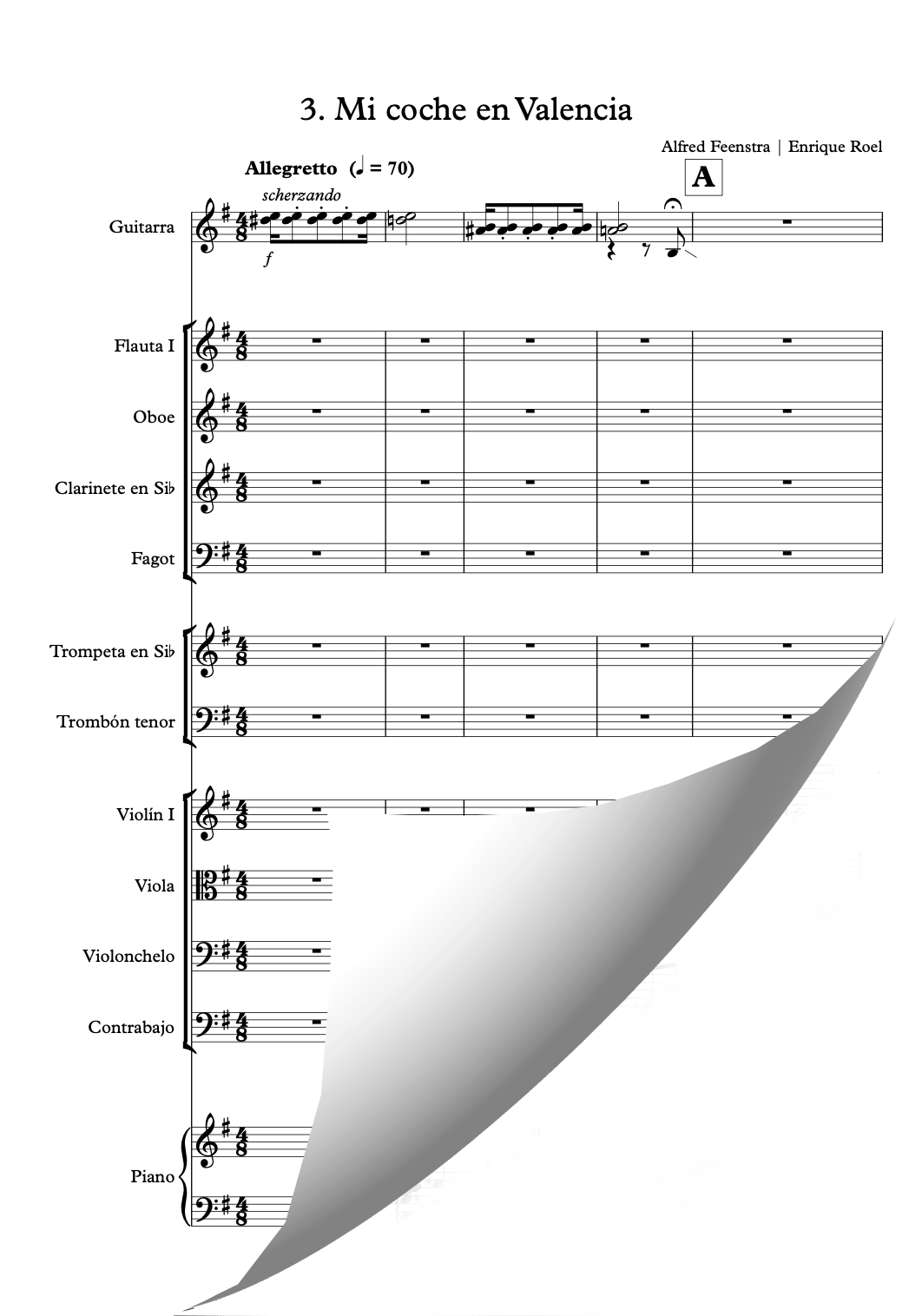 Complete Score of Mi coche en Valencia from Nacido en Valencia in its Orchestral Suite Version for Guitar and Orchestra (Score and parts).